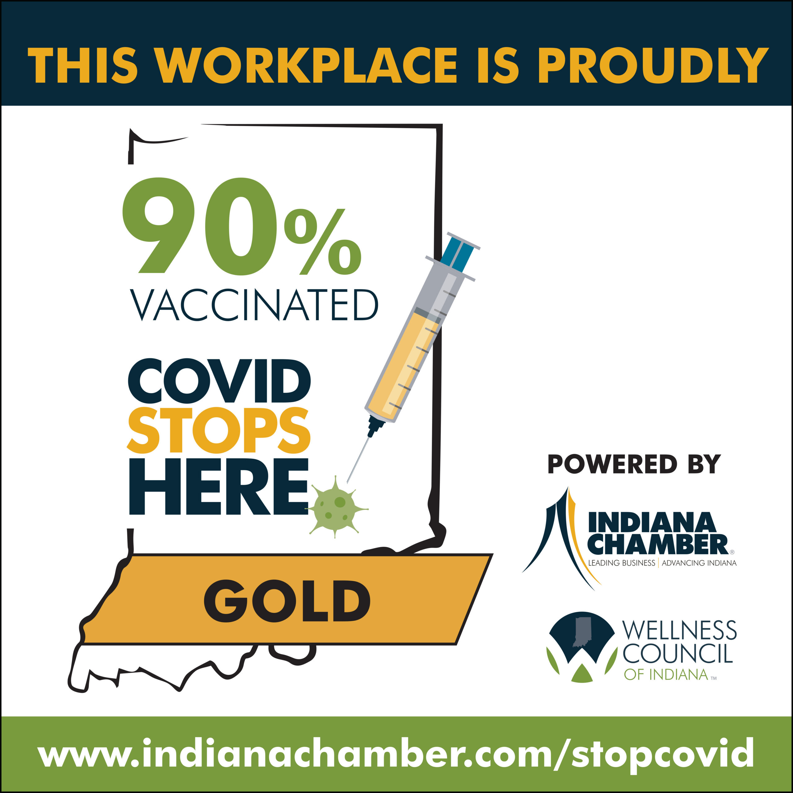 Wessler Engineering has been granted the designation of a Gold COVID Stops Here workplace for achieving a 90% vaccination rate. Promoted by the Indiana Chamber of Commerce, the COVID Stops Here campaign recognizes Indiana workplaces that have achieved widespread vaccinations against COVID-19.